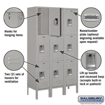 - Salsbury IndustriesĀ® Gray- Triple Tier Standard Metal Locker 5 Feet X 12Inches