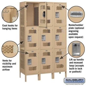 - Salsbury IndustriesĀ® Tan-Triple Tier Vented Metal Locker 6 Feet X 18 Inches
